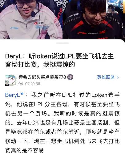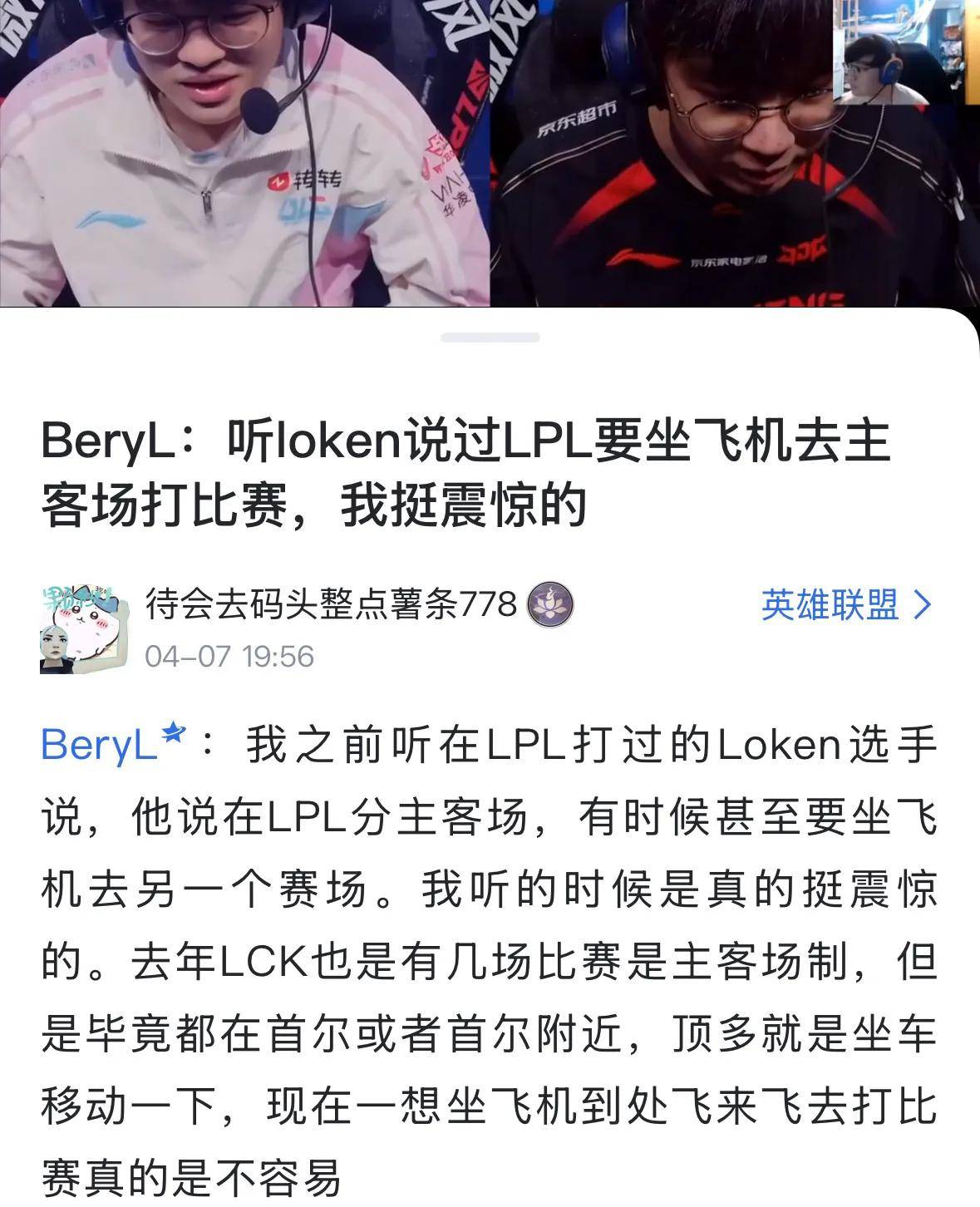 Beryl震惊LPL主客场飞机往返,韩国只需大巴车,曝Bin老陪玩价格